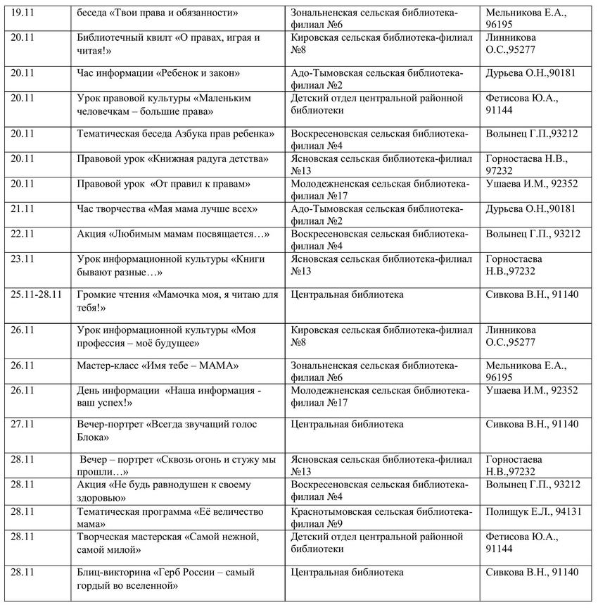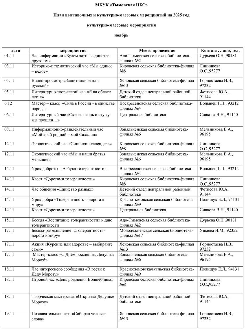 План выставочных и культурно-массовых мероприятий на ноябрь 2025 год