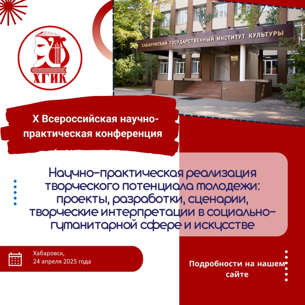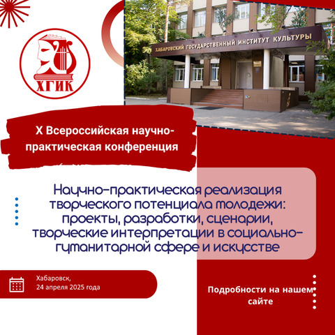 «Личность, творчество, образование в социокультурном пространстве Дальнего Востока России и стран Азиатско-Тихоокеанского региона». Мероприятие было организовано Хабаровским государственным институтом культуры и посвящено 80-летию Победы в Великой Отечественной войне и Году защитника Отечества.