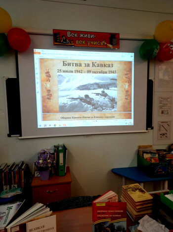 «Битва за Кавказ». Ребят ознакомили с периодами прохождения битвы за Кавказ, с двумя этапами битвы, участниками этой битвы, и значением битвы, как одной из составляющих частей общего наступления, началом победного продвижения Красной Армии в Великой Отечественной войне.