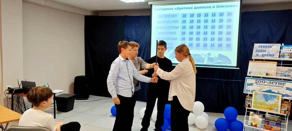 «Арктика — далекая и близкая». Участниками мероприятия стали обучающиеся 7 класса средней школы № 3 пгт. Тымовское (классный руководитель Ермолина Е.Н.). Вопросы были не просто заданиями, а настоящими окнами в мир Арктики. Для поиска ответов ребятам пришлось вспомнить картины русских и советских художников, стихи и прозу, мультфильмы и даже народную мудрость, заключенную в пословицах. Семиклассники с азартом погрузились в игру. Интеллектуальное состязание показало, что Арктика, несмотря на свою географическую удаленность, может быть по-настоящему близкой и интересной.