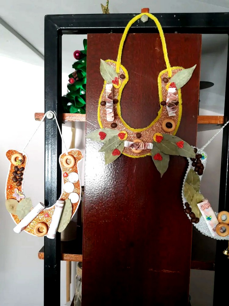 10 февраля участники творческого объединения «Я – женщина» делали подкову- оберег своими руками, используя для этого подручные материалы, и украсили ее предметами со смыслом: лавровый лист – слава, успех, кофе - долголетие, монетки - бережливость, денежные купюры – достаток, сушки - богатство.