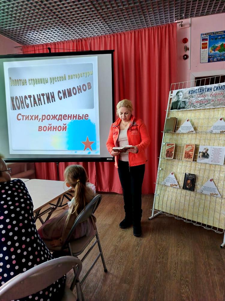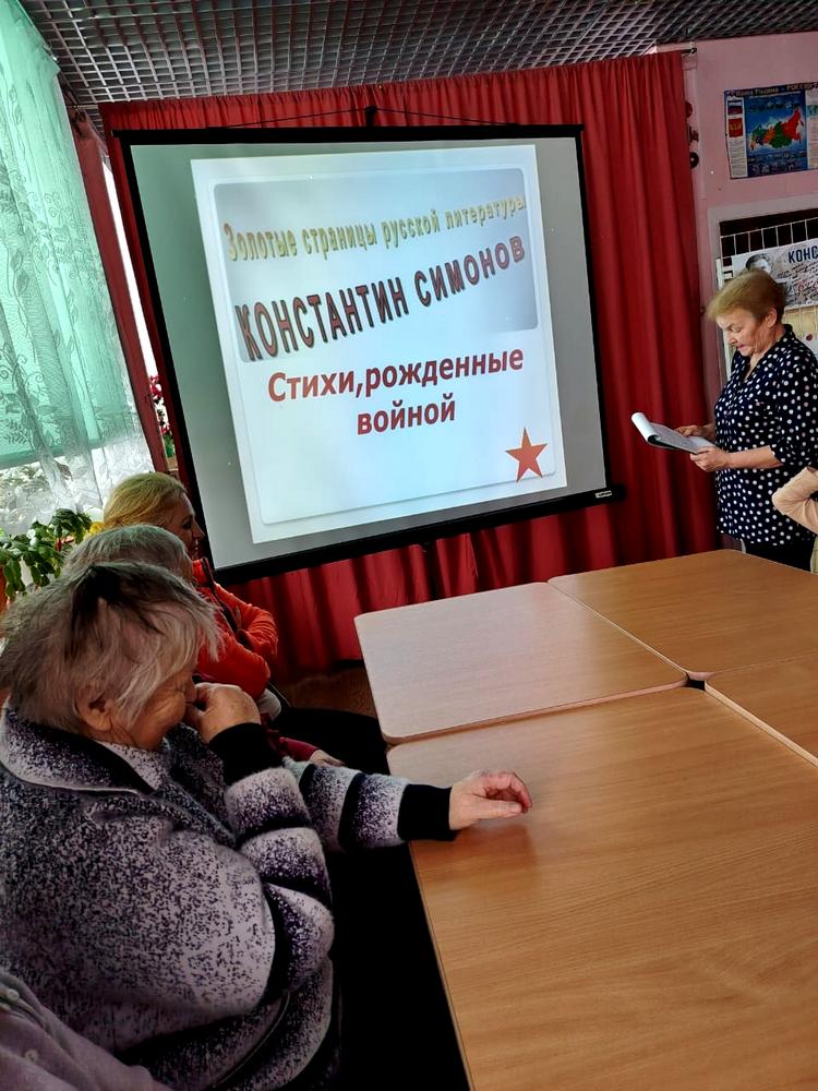 В Ясновской сельской библиотеке-филиале №13 собрались участники любительского объединения «Встреча», который работает на базе сельской библиотеки. Для категории пользователей 55+ прошел творческий вечер, посвященный жизни и творчеству выдающегося писателя и поэта, прошедшего суровыми дорогами Великой Отечественной войны – Константина Симонова.