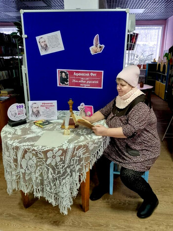 В Ясновской сельской библиотеке-филиале №13 этот юбилейный год ознаменовался проведением Дня поэзии, посвященного Афанасию Фету. Для посетителей была подготовлена книжная мини-выставка, позволяющая ближе ознакомиться с наследием поэта. В течение всего дня звучали его проникновенные стихи, которые с удовольствием читали посетители библиотеки как наизусть, так и с книжных страниц. Вспомнили и романсы, написанные на стихи Фета: «Я тебе ничего не скажу», «На заре ты ее не буди» и «Тонкая рябина», знакомым многим еще со школьных лет.