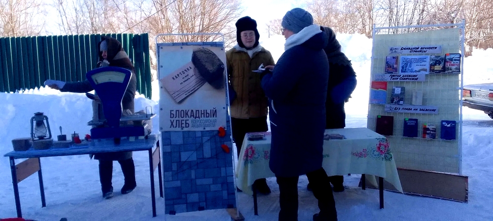 «Блокадный хлеб». Акция была организована и проведена сотрудниками Ясновской сельской библиотеки. Это событие стало данью уважения беспримерному подвигу ленинградцев. Мероприятие позволило вновь ощутить дух мужества и несгибаемой стойкости тех, кто защищал и пережил блокаду великого города на Неве. Ведь город находился в кольце врага долгие 872 дня, с 8 сентября 1941 года по 27 января 1944 года.