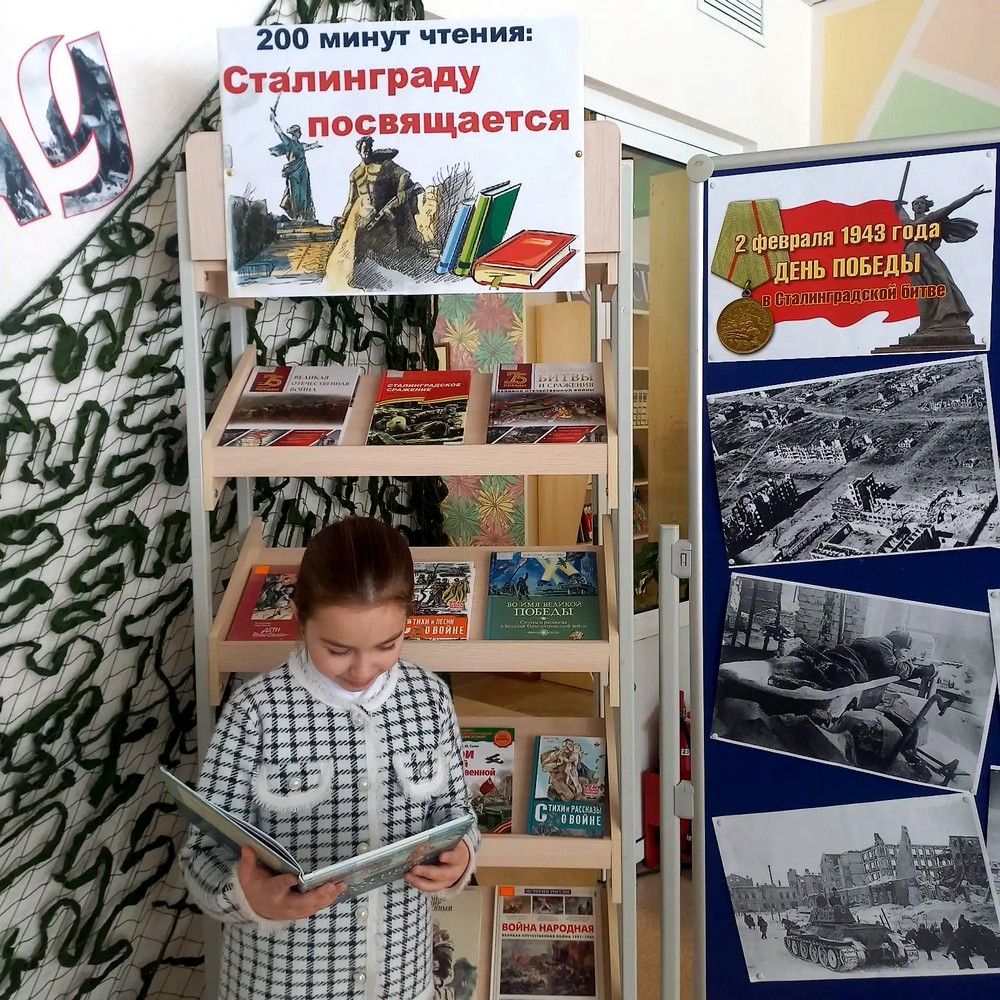 «200 минут чтения: Сталинграду посвящается». Ребятами был прочитан рассказ С. Алексеева «Геннадий Сталинградович». После обсуждения событий и героев произведения участники мероприятия ответили на вопросы викторины по прочитанному рассказу.