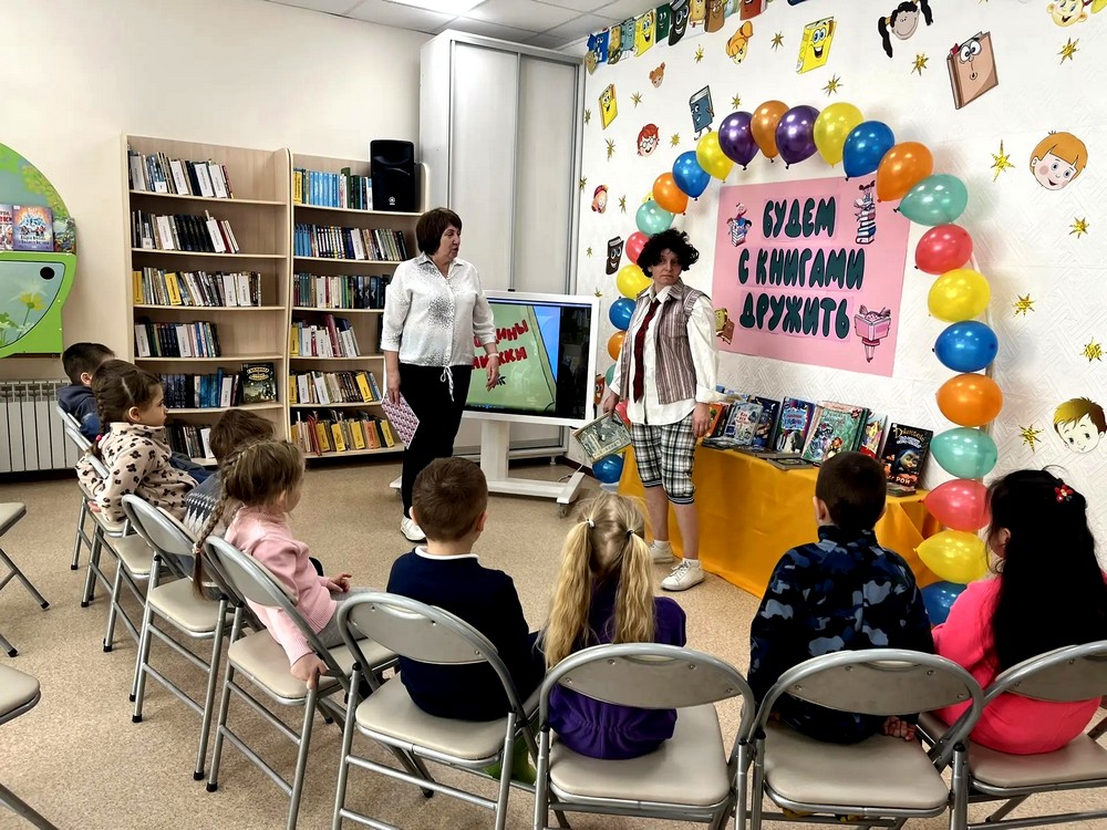 «Будем с книгами дружить!». Её участниками стали самые юные читатели - воспитанники детского сада. В гости к ребятам пришли сразу два сказочных персонажа: озорной Буквоежка, который, оказывается, совсем не умел обращаться с книгами, и строгий, но добрый доктор Книжкин. Буквоежка принес свою любимую книгу, а когда показал ее ребятам, то оказалось, что он совсем не умеет с ней обращаться: загибает страницы, рисует на полях и даже пытается покусать и попробовать на вкус!