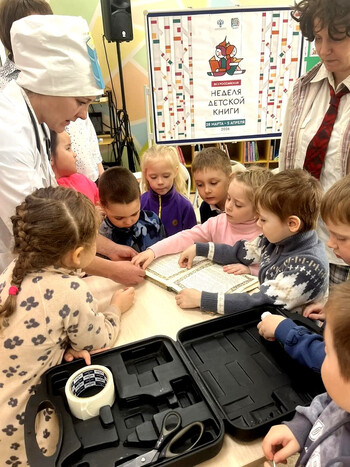 Дошколята вместе с доктором Книжкиным тут же принялись за дело: они «лечили» испорченную книгу - подклеивали страницы, расправляли уголки и стирали карандашные пометки. А заодно объяснили гостю главные правила обращения с книгами.