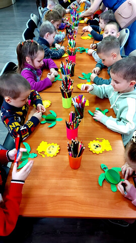 В творческой части мероприятия детям было предложено «оживить» заранее изготовленных (безликих) сказочных персонажей. В итоге на мордочках львенка и черепахи засияли лучистые глаза и милые улыбки.