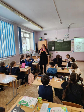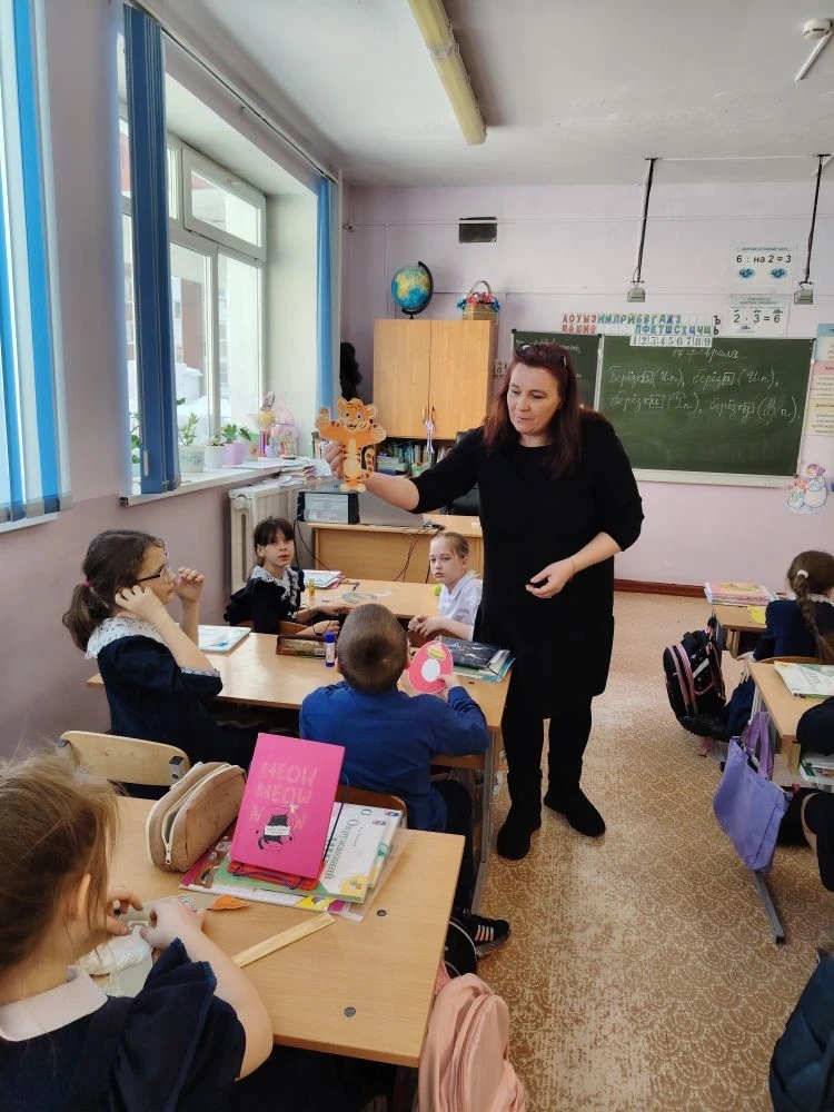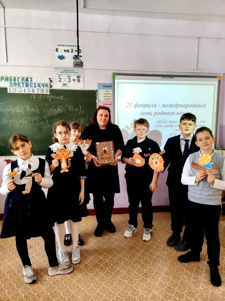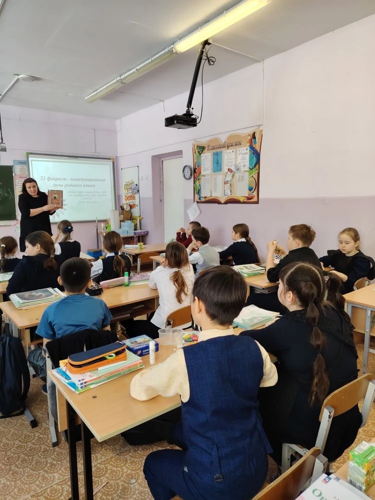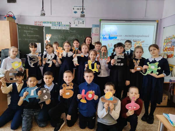 «Раз словечко, два словечко» с учащимися 3В класса МБОУ СОШ № 1 пгт. Тымовское. В начале мероприятия ребятам рассказали об истории Дня родного языка, затем была проведена увлекательная викторина. И в заключение мероприятия каждый ребенок изготовил из бумаги озорную букву русского алфавита.