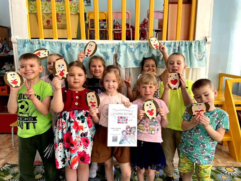«Сказки Сутеева – на страницах и экране». В ходе мероприятия ребята ознакомились с творчеством Владимира Сутеева, его сказками и иллюстрациями. Для более глубокого погружения в тему прошла веселая викторина по мультфильмам: «Грибок-теремок», «Кораблик» и «Разные колеса». Кроме того, малыши посмотрели мультфильм «Яблоко», из которого они узнали, как важно делиться и не ссориться со своими друзьями.