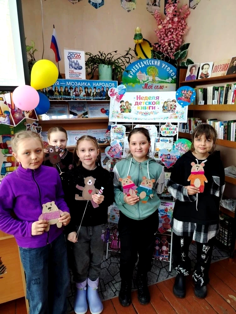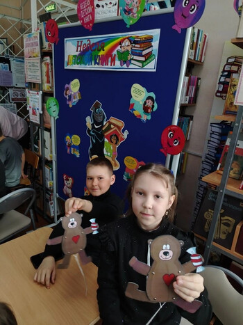 «Медвежьи истории», посвящённый сказкам народов России, главным героем которых является медведь. Ребята вспомнили хорошо знакомые с раннего детства, русские народные сказки, с интересом ознакомились с ханты-мансийской народной сказкой «Старик и медведь» и якутской сказкой «Росомаха и медведь». Участвовали в «медвежьей» викторине и охотно делились своими знаниями об этом сильном, умном животном. В конце мероприятия ребятам было предложено сделать своими руками на память о нашей встрече медвежат. И как известно, умелые руки не знают скуки… В итоге кто-то смастерил одного Топтыгина, а кто-то унёс с собой целую медвежью семью.