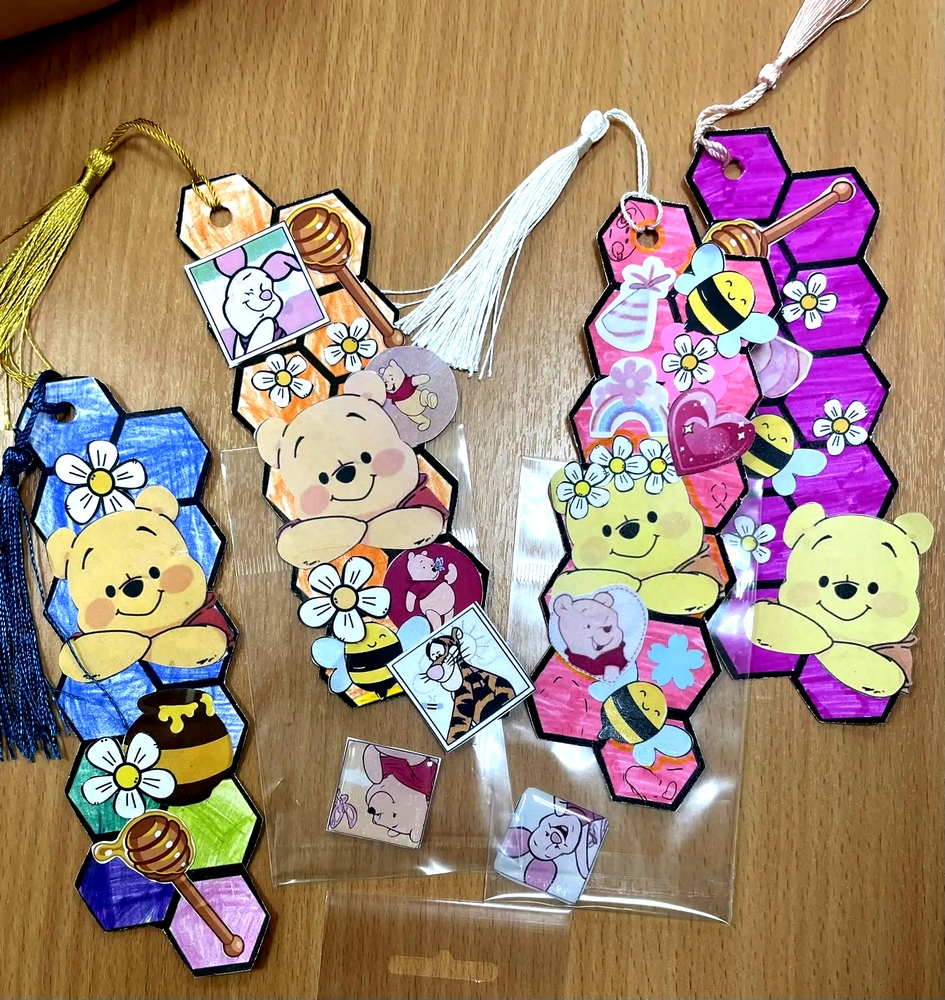 Также ребята узнали, что Винни-Пух и его друзья любят путешествовать и никогда не сидят на месте. Вдохновлённые этим, дети отправились в творческую мастерскую, где создали красивые книжные закладки, похожие на частички волшебного леса. Закладки были выполнены в технике скрапбукинг – искусстве украшения открыток, альбомов и закладок с помощью бумаги, наклеек, лоскутков и различных декоративных элементов. У всех получились уникальные и яркие закладки.