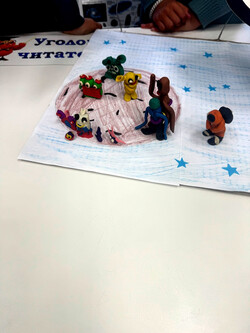Затем юные читатели приступили к творчеству: из бумаги делали ракету и инопланетный космический корабль, а из пластилина лепили инопланетных жителей. В итоге получилась общая яркая работа.