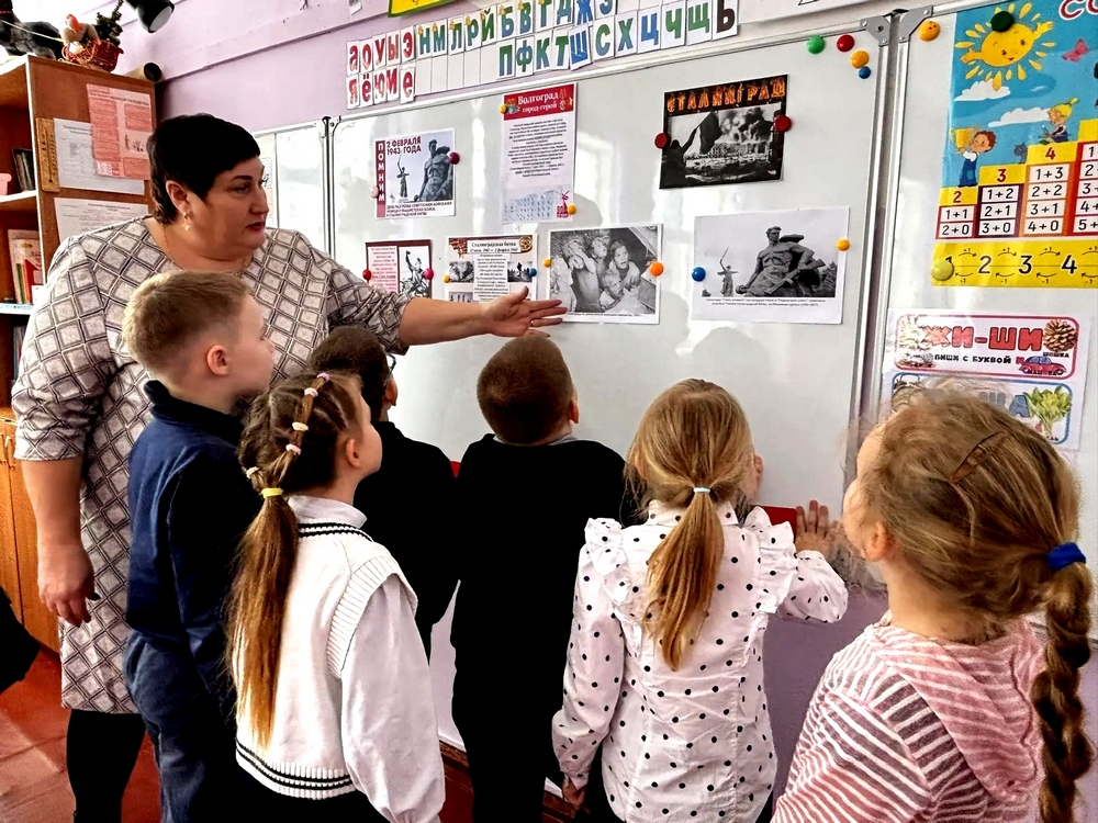 «Сталинграду посвящается». От заведующей сельской библиотеки ребята узнали о жестоких боях города Сталинграда (Волгограда), о знаменитом Доме Павлова - одном из ключевых объектов обороны Сталинграда. Были прочитаны произведения из книги С. Алексеева «Сталинградское сражение 1942–1943» - «Мамаев Курган» и «Победа под Сталинградом».