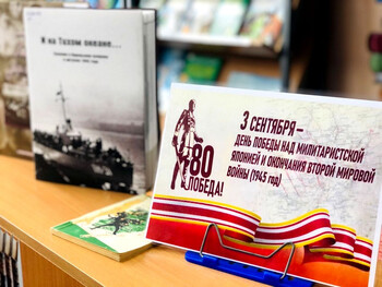 «В сердцах и книгах память о войне». На выставке были представлены книги о боевых действиях, происходивших в августе 1945 года на Сахалине и Курильских островах и героях-освободителях Сахалинской области.