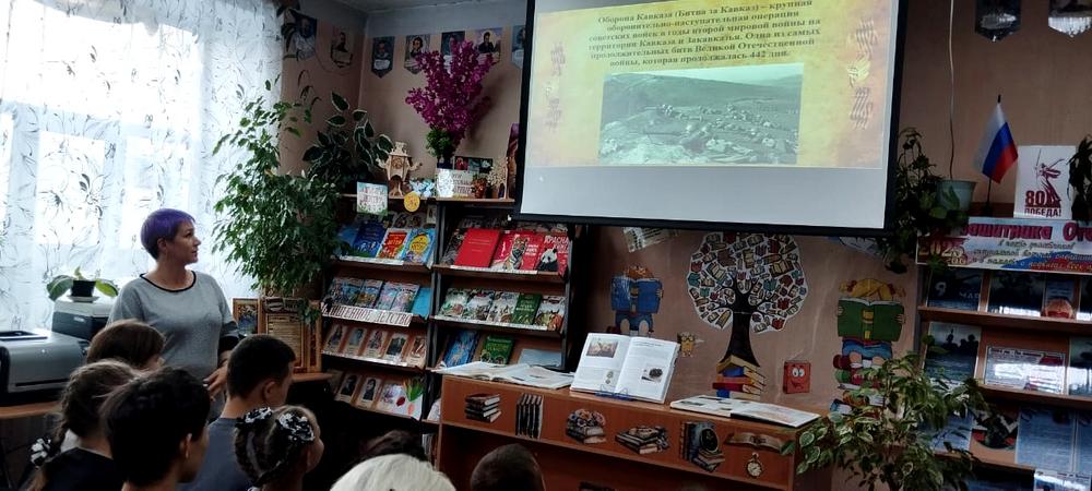 «Битва за Кавказ: 442 огненных дня» для воспитанников ГКУ СРЦН «Добродея». Библиотекарь рассказала, что оборона Кавказа проходила в два этапа: с 25 июля по 31 декабря 1942 года велось наступление со стороны немецкой армии, которой удалось захватить часть территорий; с 1 января по 9 октября 1943 года советские войска, начав контрнаступление, заставили фашистов отступить и отвоевали захваченные врагом территории.