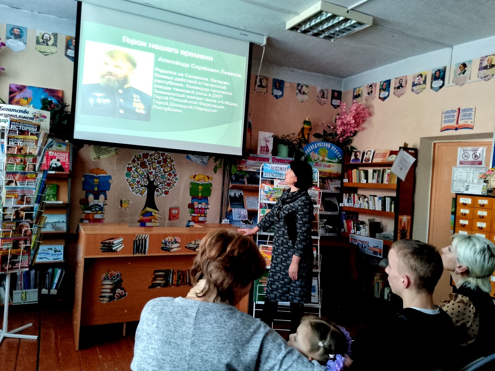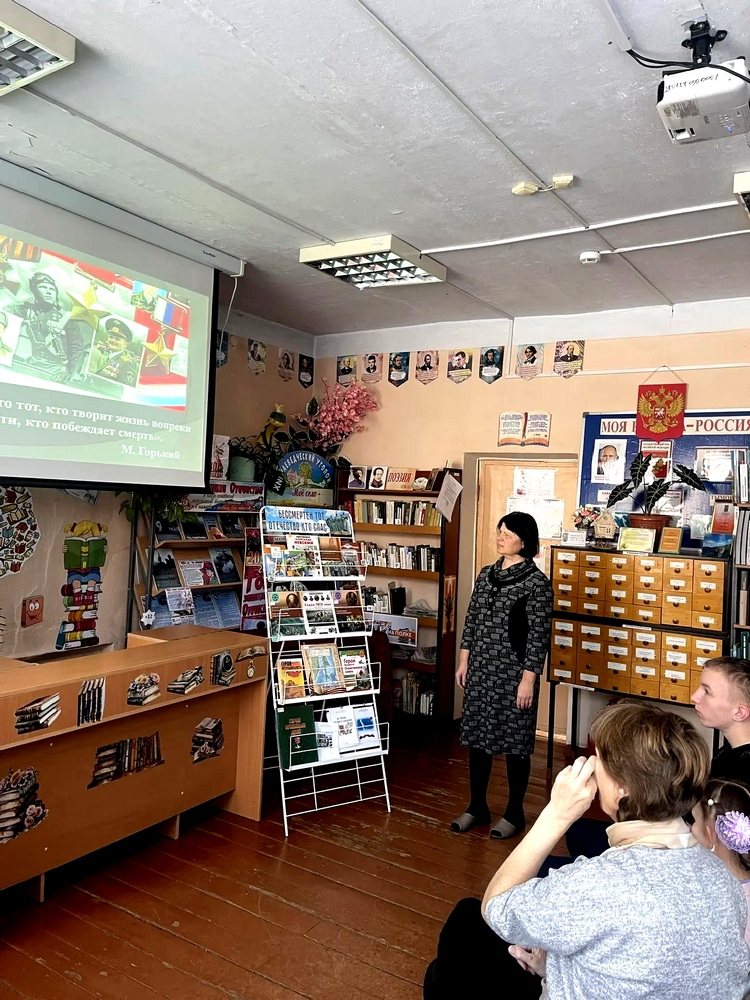 В этот день сотрудники Кировской сельской библиотеки провели для воспитанников ГКУ СРЦН «Добродея» (педагоги Скрылева С.М. и Жданкина А.В.) час героического портрета