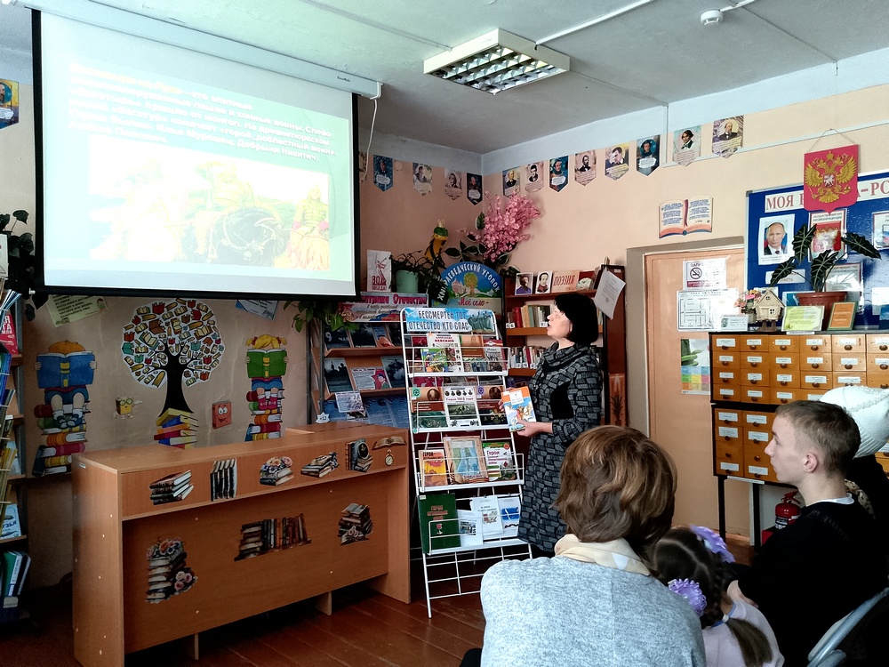 «И слава гордая сынам!». С помощью мультимедийной презентации библиотекари смогли перенести ребят в разные эпохи, рассказывая о том, как на протяжении веков наш народ мужественно защищал свою Родину. Путешествие началось с былинных героев, чьи подвиги воспеваются в народных сказаниях, и продолжилось рассказами о героях нашего времени, чьи имена навсегда вписаны в летопись славных дел. Дети узнали о великих полководцах, отважных солдатах, самоотверженных врачах и всех тех, кто в трудные минуты проявлял невероятную силу духа.