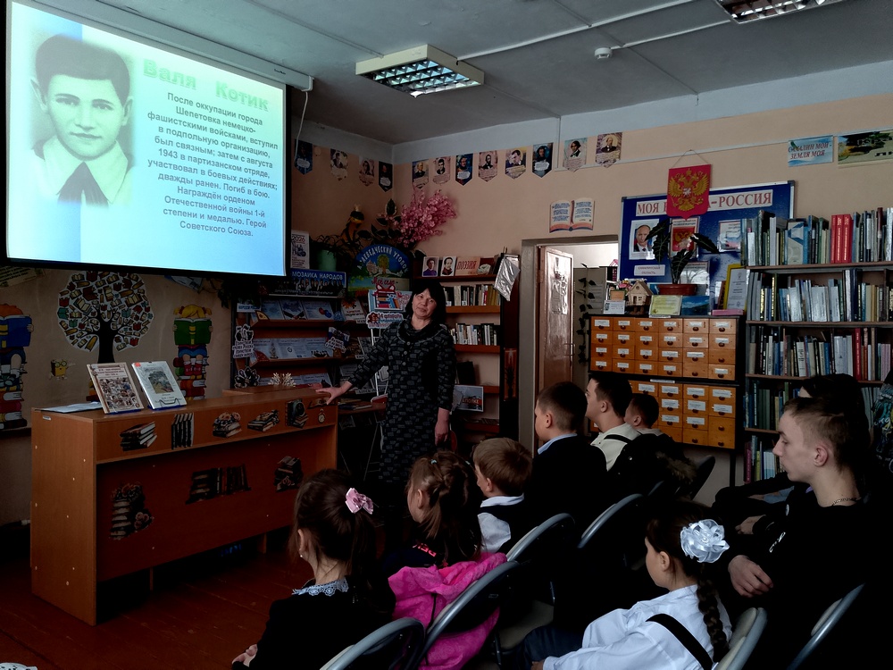 «Отважное маленькое сердце». В ходе урока ребята вспомнили имена и подвиги тех мальчишек и девчонок, которые со школьного порога вступили в борьбу с вреагом. Были прочитаны проникновенные стихотворения «Не думал Леня Голиков о славе…» и «Портнова Зина» Л.Ф. Отраднова, которые ещё раз напомнили о цене свободы и храбрости юных героев.