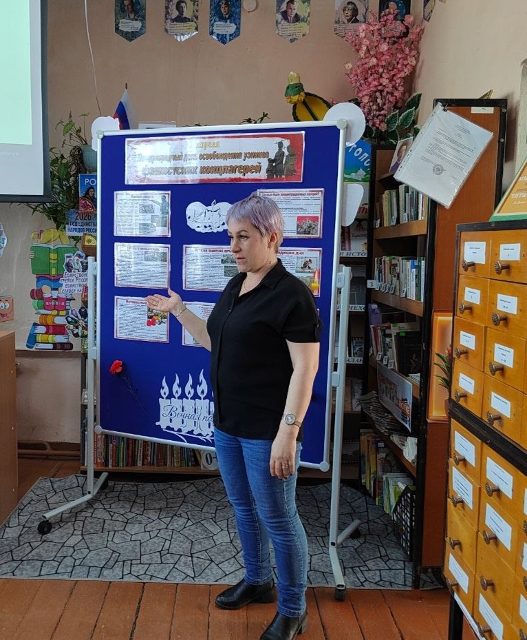 «Ад под колючей проволокой» для воспитанников ГКУ «Социально-реабилитационный центр для несовершеннолетних «Добродея». Библиотекарь, открывая мероприятие, отметила значимость выбранной даты, которая была установлена в память о тех, кто пережил ужас концлагерей, - о тех, кто стал жертвами фашистского режима. Важность таких мероприятий трудно переоценить, ведь они помогают сохранить память о трагедии и предупредить о необходимости противостоять любым проявлениям агрессии и нетерпимости.