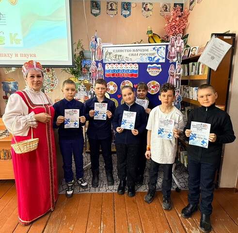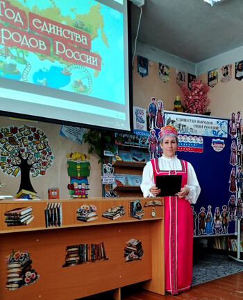 «Сказочный ковёр дружбы народов» для учащихся начальных классов МБОУ СОШ с. Кировское. Гостей мероприятия встретила в библиотеке Сказочница - хранительница старинных историй, что передаются из уст в уста, из поколения в поколение и пригласила ребят отправиться в удивительный круиз по нашей необъятной Родине – России! Началось путешествие с просмотра мультфильма о народах России. Наша Россия – страна огромная, красивая, и живут в ней люди разных национальностей. У каждого народа свои песни, свои танцы, свои обычаи. Но есть кое-что, что объединяет всех нас, что делает нас похожими, несмотря на разные языки и наряды. Знаете - что это? Это – сказки!