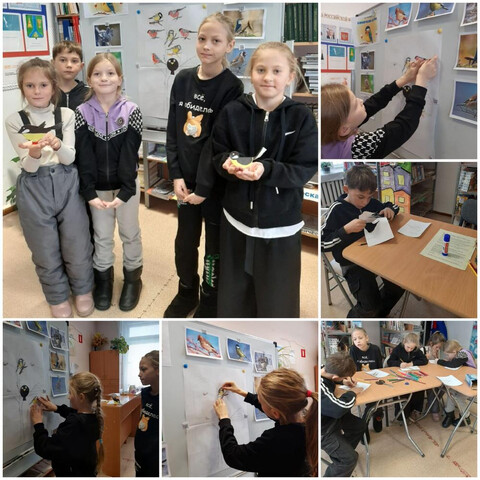 «Синичкин день». Библиотекарь рассказала об истории праздника, о том какие птицы остаются зимовать и о том, как трудно им пережить зиму. Затем ребята сделали коллективную работу, выполненную в технике аппликация. С помощью клея дети посадили свою синичку на веточку. Теперь у нас есть красивое панно, которое напоминает нам о важности заботы о наших пернатых друзьях!