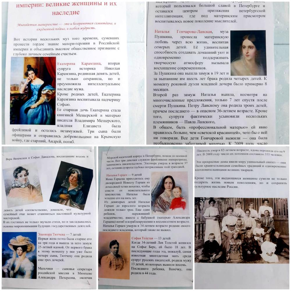 «Матери-героини Российской империи». Многодетное материнство – это безграничная самоотдача, и ежедневный подвиг, и особая мудрость. Посетители библиотеки могли ознакомиться с историей жизни нескольких женщин XIX века, сумевших пронести гордое звание матери-героини Российской империи и объединить высокое общественное призвание с личным семейным счастьем.