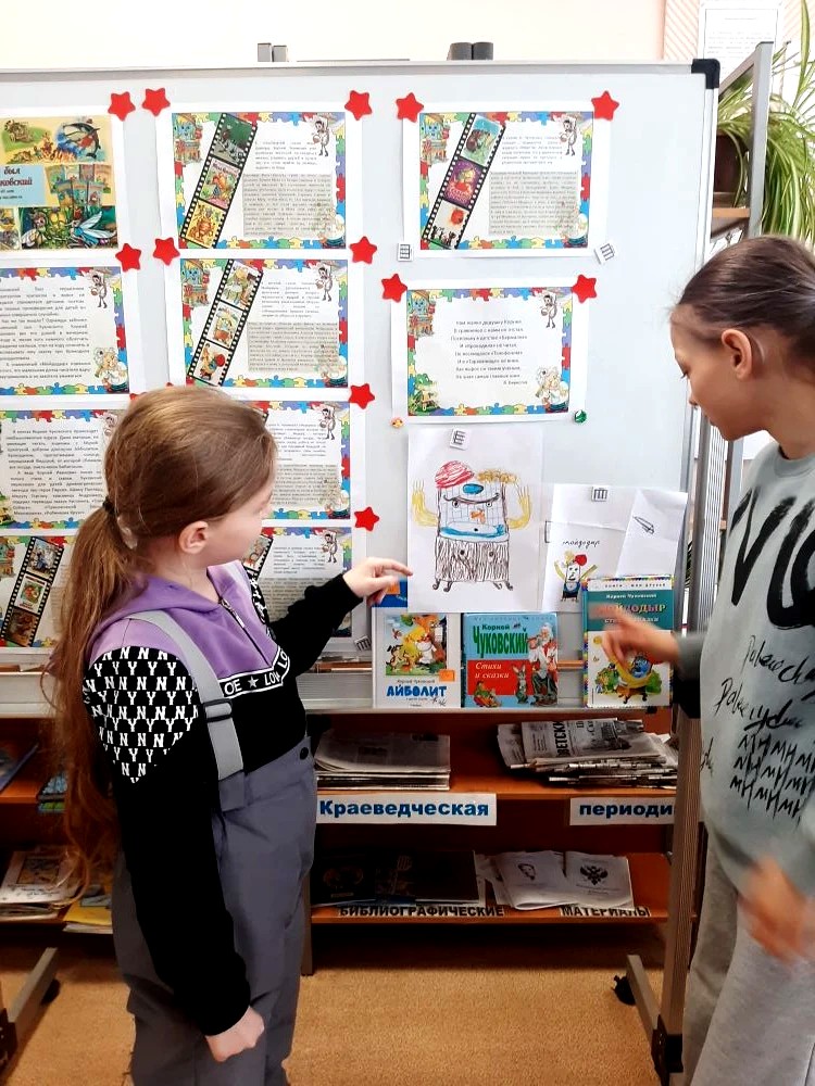 «Книжный калейдоскоп», где были представлены новинки детской литературы, книги о природе, науке и приключениях. Особое место заняли произведения К.И. Чуковского.